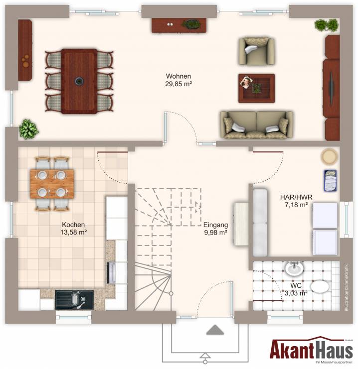 Auf 121m² Nutzfläche bietet unser Massivhaus Ihnen und Ihrer Familie genügend Raum und Platz zu einem exzellenten Preis-Leistungsverhältnis. Individuell gestalten Sie mit uns Ihr Einfamilienhaus, ganz nach Ihren Wünschen und Vorstellungen.